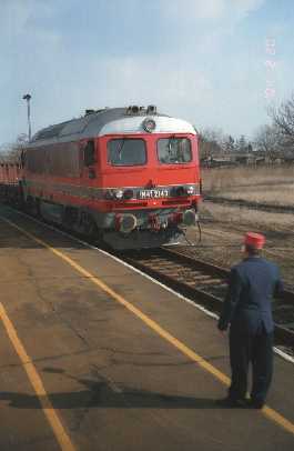 Csémpuszta bejáratában hosszasan álldogálunk. Végre megérkezik a vasúti dolgozó, a vágányok között biciklin közlekedik. A biciklit otthagyja a két vágány között, beballag a bódéba, kezeli a jelzőt, fogadja a vonatot, majd visszaállítja a jelzőt és újra bezárja a bódét. Amíg vártunk, volt idő felidézni, hogy az egész vonalon csak alaki jelzőket láttam, azt viszont bőségesen. A biztosító berendezések is nagyobb forgalomra készültek. A másik ami foglalkoztat, hogy milyen mozdony állhat bent az állomáson, nem ismerem fel a bejártból. Az állomásra érve kiderül, hogy az M41 2143 áll ott egy tehervonattal. A mozdony meggypirosra van festve, feltehetően ez lehetett az első gépek eredeti színe.