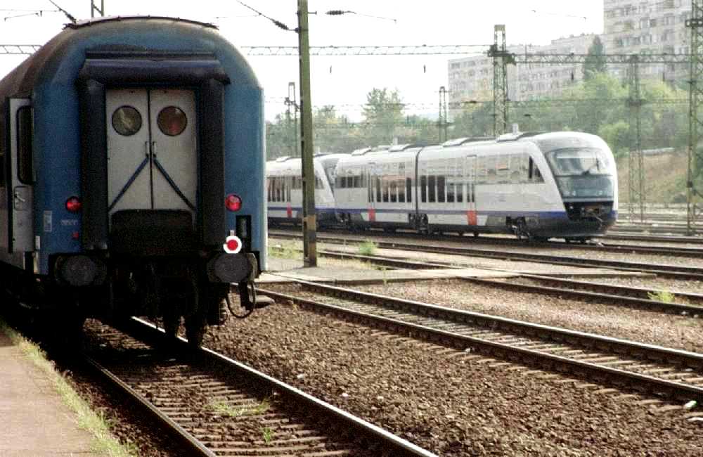 Kelenföldön leszállok nézelődni egy kicsit a 14-15 közötti peronról. Tetszik, hogy viszonylag sok tehervonat van. Álldogált ott három CFR Desiro is járó motorral. Érdekes a színük, nehezen tudom elképzelni a fehér vonatokat abban a Romániában, ahol én utoljára jártam. De a MÁV színnel sem vagyok megelégedve. Szerintem a MÁV Desirónak pont olyan a színe, mint DB-s társainak. (Az index vasútmániás fórumán írta valaki, hogy azért ilyen, mert olcsóbb volt DB színben, mintha valami más festéssel kérték volna.)