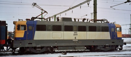 A postainga V43 2281, 6 Bhv, BDt 428. Újdonság a "Szolnok" iránytábla a BDt oldalán.