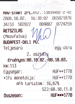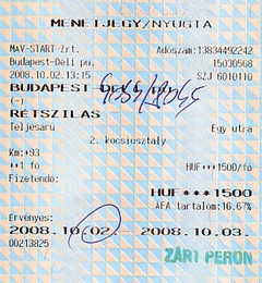 Jön a jegyvizsgáló, "a délitől idáig nem kezelték a jegyét ? - teszi fel a költői kérdést. A ZÁRT PERON pecsét szerinte nem számít. Ez csak azért fura egy kicsit, mert az előző kalauz megelégedett azzal, hogy egy pillantást vetett a lepecsételt jegyre.