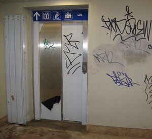 kell megtennem. Az aluljáróban a lift siralmas képet mutat, és természetesen nem működik.