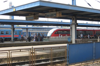 gyorsvonattal, öt kocsiból áll, nem feleslegesen, bár messze nincs olyan tömeg ott,