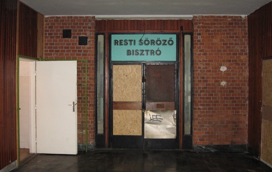 az egyetlen utaskényeztetés a WC, a büfé romjait már évek óta vastag por lepi.