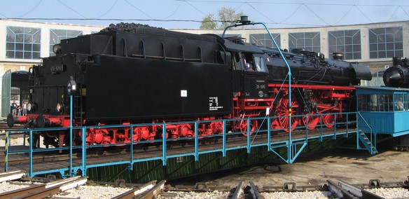 egyik csillogó gigászát, a német 03 1010-et éppen hátra viszik valahová.