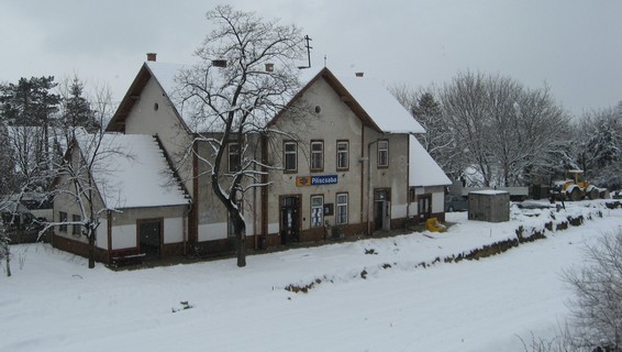 Piliscsaba állomás vágányainak hűlt helyét hó fedi. Az időjárás nem