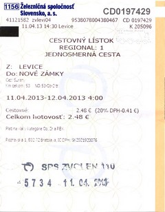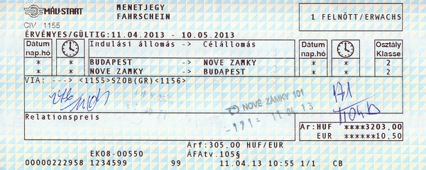 volt, 300 forintos euróval számolva. (Léva - Érsekújvár gyorsvonattal 870 forint lett volna.)