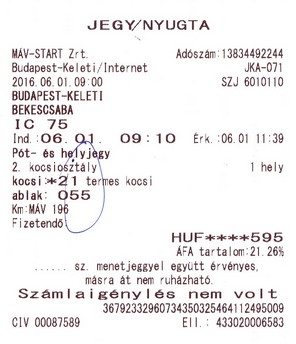 Bp.Keleti - Békéscsaba - Mezőhegyes - Orosháza - Hódmezővásárhely - Kiskunfélegyháza - Zugló, 520 km, 2016.06.01. szerda